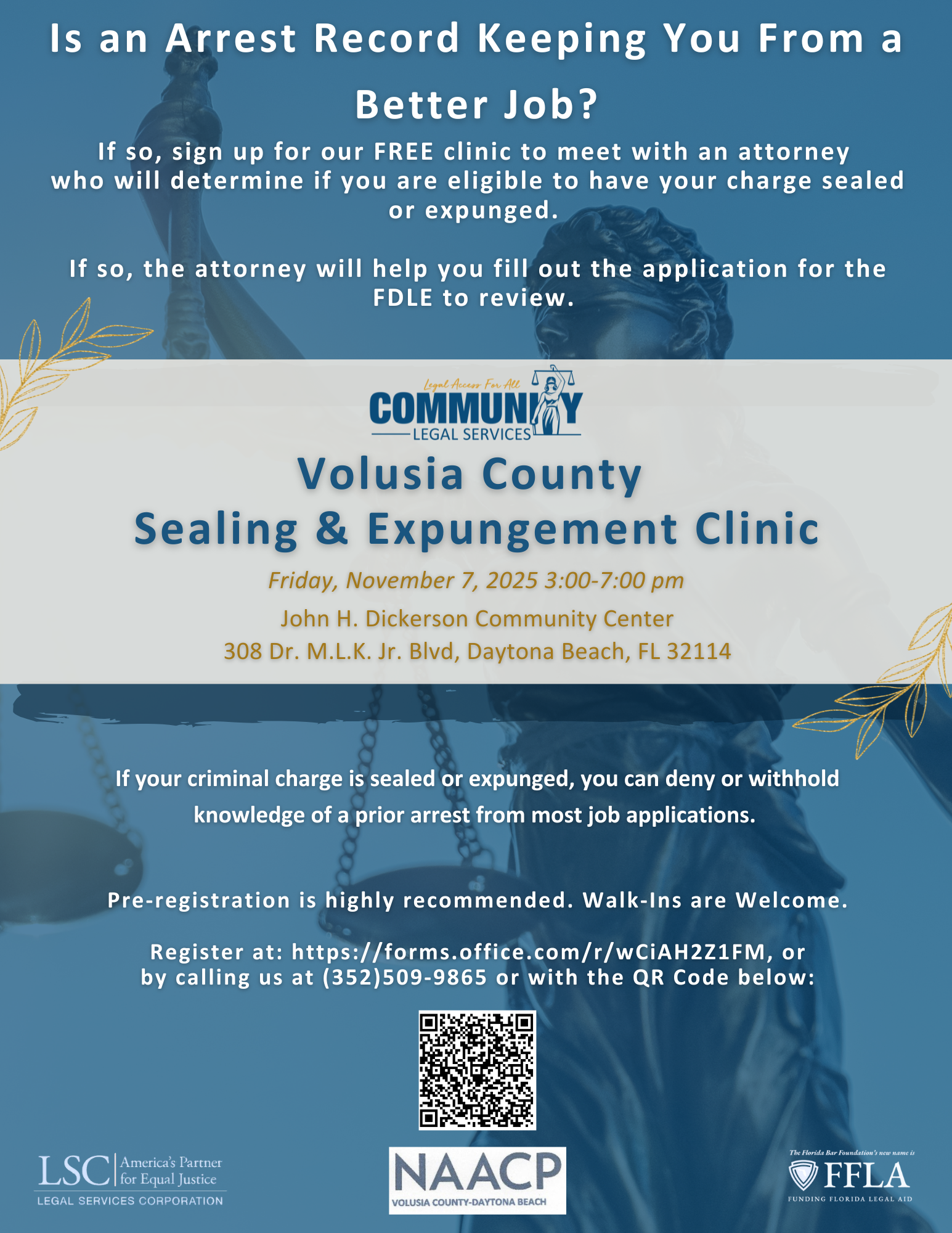 If so, sign up for our FREE clinic to meet with an attorney who will determine if you are eligible to have your charge sealed or expunged.